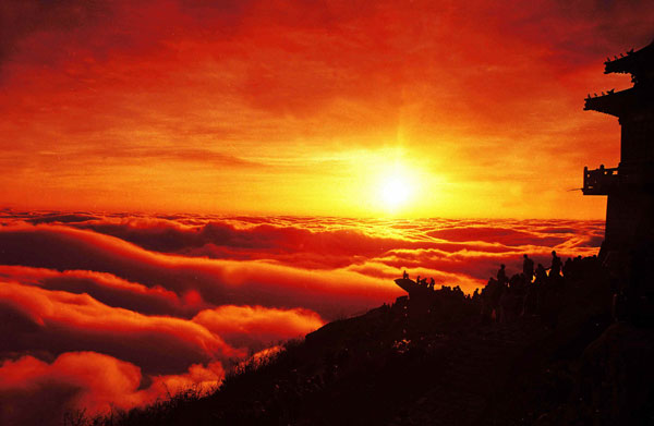 當夕陽西下的時候,若漫步泰山極頂,又適逢陰雨剛過,天高氣爽,仰望西天,朵朵殘云如峰似巒,一道道金光穿云破霧,直瀉人間。在夕陽的映照下,云峰之上均鑲嵌著一層金燦爛的亮邊,時而閃爍著奇珍異寶殿的光輝。那五顏六色的云朵,巧奪天工,奇異莫測,如果云海在此時出現(xiàn),滿天的霞光則全部映照在“大?!敝?,那壯麗的景色、大自然生動的情趣,就更加令人陶醉了。晚霞夕照與黃河金帶的神奇景色,與季節(jié)和氣候有著很大的關系。為了能充分領略和享受這一奇觀美景,選擇恰當?shù)穆糜螘r機非常重要,秋季最好。因為這時風和日麗,天高云淡;其次是大雨過后,殘云縈繞,天晴氣朗,塵埃絕少,山清水秀。你盡可放目四野,飽覽“江山如此多嬌”的秀容美貌。