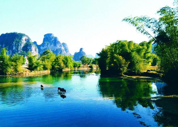 “桂林山水甲天下,陽朔山水甲桂林,群峰倒影山浮水,無山無水不入神”,此詩把陽朔的自然風(fēng)光描繪得淋漓盡致。位于漓江西岸,風(fēng)景秀麗、氣候溫和宜人的陽朔,以“山青、水秀、峰奇、洞巧”為天下四絕。陽朔全縣有大小山峰數(shù)萬座,大小河流17條,如漓江陽朔河段、遇龍河等。百里山川,處處奇山秀水,自然景觀與人文景觀交相輝映,吸引了眾多的國內(nèi)外游客前往。