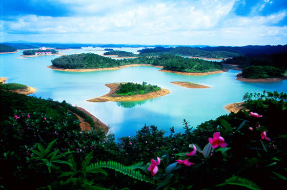 星島湖位于北海市合浦縣西北部的洪潮江水庫(kù),距離北海約1小時(shí)的車(chē)程。大大小小1026個(gè)島嶼宛如一顆顆璀璨的星星撒落在方圓600平方公里的綠水碧波上,因成于丘陵地區(qū),地形起伏交錯(cuò),形狀各異,林木蒼翠,因此得名。并且這里還是連續(xù)劇《水滸傳》中“水泊梁山寨”的外景拍攝基地之一。