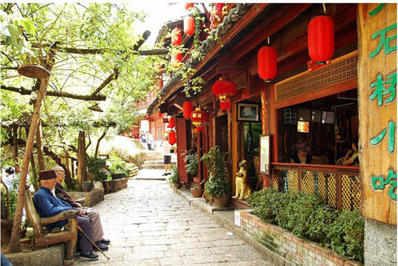 也許是離玉龍雪山更近些吧,束河門(mén)前屋后流淌的溪水比大研的清純?cè)S多,一束束的水草在狹窄的小溪中半浮半沉、蕩漾躍動(dòng),惹人聯(lián)想,令人心醉。往往讓人留連的是那些各具特色的酒吧和餐廳。徜徉在古城中,隨便找一處地方發(fā)發(fā)呆,是在束河的最大享受。