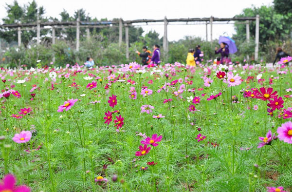走進百萬葵園的鮮花港,一陣陣清幽的花香撲鼻而來。這里栽種了上千種從各地空運的異國花卉,而且品種就算在所在國也是十分珍稀,當中有日本的香水百合和水玲瓏、土耳其的洋牡丹、南非的天堂鳥等等。鮮花港內(nèi)最具有氣勢的是臺灣萬朵蝴蝶蘭,滿目的鮮花勾起了人們對春天的無限向往。而海棠花是我國的傳統(tǒng)名花之一,自古以來是雅俗共賞的名花,素有“國艷”之譽,花中神仙、花貴妃之稱。其花未開時,花蕾紅艷,似胭脂點點,開后則漸變粉紅,有如曉天明霞?;ǘ浯厣陧敹耍涠鋸澢麓?,如遇微風飄飄蕩蕩,嬌柔紅艷。遠望猶如彤云密布,美不勝收。
