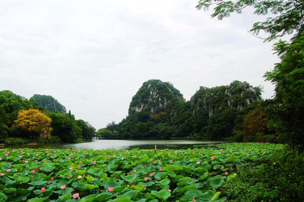 在我國廣東省肇慶市區(qū)的北側(cè),一處近七平方公里的湖面上,聳立著七座挺拔秀美的石峰,這就是遠近聞名的奇景七星巖。這里的景色堪稱秀美旖旎,在這里的湖水稱得上是寧靜清透、明亮如鏡,四周可謂環(huán)山抱水,粼粼的波光與峻奇的巖影交相輝映,風(fēng)光可以說是俏麗精美,別有一番情趣,因此吸引了眾多前來七星巖旅游觀光的游人。到七星巖景區(qū)游玩,您可以看到這里遍布著秀麗的湖水、威聳的山崗、奇秀的石巖,以及神秘的洞府,這些獨特出眾的奇景構(gòu)成了一座天然而綺麗的山水盆景,猶如一幅秀美的畫卷深深了印刻在了這些前來七星巖觀光游玩的游客心中。七星巖景區(qū)內(nèi)的主要特色就是那些與喀斯特溶巖地貌相同的石巖,以及清秀的湖泊景觀,來此游玩的人們大多被這兩處勝景所吸引,以致陶醉于此、樂不思歸。