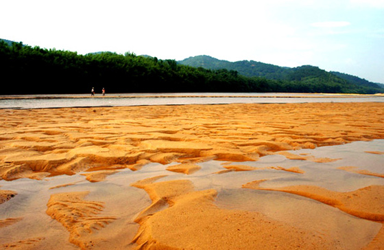 沿著道家村北流河邊看,有一片長(zhǎng)1公里、罕見的天然內(nèi)河沙灘。沙質(zhì)金黃潔凈,沙波連綿起伏,濱連于開闊寧?kù)o的河面,平沙落雁,水天一色。在沙灘上駕駛四輪的沙灘車,或著在沙灘木屋內(nèi)河一杯啤酒,是很愜意的。