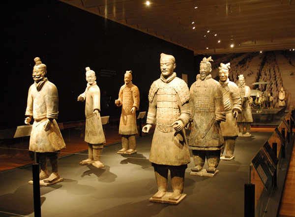 兵馬俑多用陶冶燒制的方法制成,先用陶模作出初胎,再覆蓋一層細泥進行加工刻劃加彩,有的先燒后接,有的先接再燒。其實當(dāng)年的兵馬俑各個都有鮮艷和諧的彩繪。我們發(fā)掘過程中發(fā)現(xiàn)有的陶俑剛出土?xí)r局部還保留著鮮艷的顏色,但是出土后由于被氧氣氧化,顏色不到十秒鐘瞬間消盡,化作白灰?,F(xiàn)在能看到的只是殘留的彩繪痕跡。兵馬俑的車兵、步兵、騎兵列成各種陣勢。整體風(fēng)格渾厚、健壯、洗練。如果仔細觀察,臉型、發(fā)型、體態(tài)、神韻均有差異:陶馬有的雙耳豎立,有的張嘴嘶鳴,有的閉嘴靜立。所有這些秦始皇兵馬俑都富有感染人的藝術(shù)魅力。