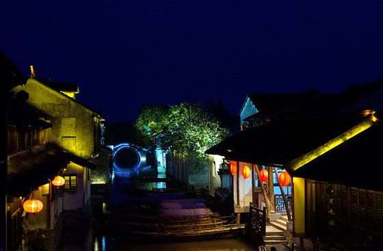 紅燈點(diǎn)點(diǎn),楊柳岸邊,舟行河上,柔櫓清漣,絲竹叮鐺,吳歌如夢,宋水依依。抬頭望著如洗的星空,會(huì)發(fā)現(xiàn)天地陡然間空曠了許多似的。高天闊地,心情自然也隨之豁達(dá)了很多。懷一份留戀不舍,小橋流水,河畔人家。周莊,這朵浮在水上的睡蓮,便永遠(yuǎn)留在你的心里了。