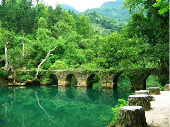 大七孔景區(qū)是以原始森林、峽谷、伏流、地下湖為主體的景區(qū),景觀峻險(xiǎn)神奇,氣勢(shì)雄峻磅礴。洞中有瀑,瀑下有湖,湖上有天窗,極富驚險(xiǎn)性、夸張性。高百米、寬數(shù)十米跨江而過的天生橋被譽(yù)為“大自然神力塑造的東方凱旋門”。