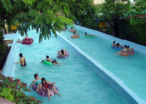 夢(mèng)幻水城的漂流河是目前國內(nèi)最長的一條人工漂流河,它營造出水流湍急的激流河狀態(tài),刺激,緊張,有趣。而滑道區(qū)則有包括平等競(jìng)賽滑道、螺旋滑道、大型浮筏水滑道和高速滑道。其中高速滑道是兩條并列的有8層樓高的高速滑梯,從頂端滑下來僅需2.6秒,頗有從云端滑落的刺激感。還有瀑布區(qū)和情侶池、夢(mèng)幻夜場(chǎng)等,夏天的夜晚會(huì)開放夜場(chǎng),在這里可以欣賞到極具異國風(fēng)情的獨(dú)特表演,還可以在動(dòng)感的音樂中與你喜歡的演員翩翩起舞。