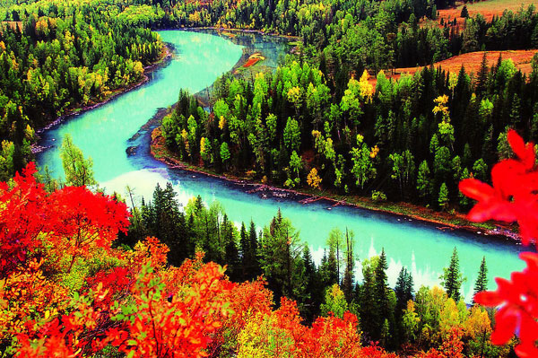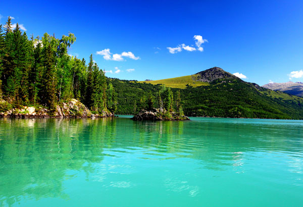 新疆的喀納斯是個(gè)美麗而神秘的地方:湛藍(lán)的天空下,湖水藍(lán)如寶石,碧波蕩漾,喀納斯河如玉帶般的蜿蜒而過;四周蔥蔥蘢蘢的柏樹林在陽光的照耀下異常閃亮金黃;不遠(yuǎn)處,草原上的花兒姹紫嫣紅地盛開,馬兒羊兒成群結(jié)隊(duì)悠閑地在湖邊散著步;抬頭望去,雪峰高聳入云,一派湖光山色的美景,令人心馳神往。