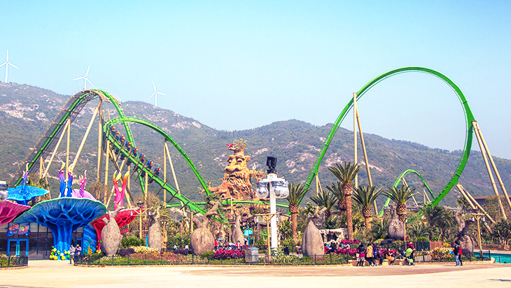 - 全球最長的飛行過山車——鸚鵡過山車,軌道全球最長的飛翼過山車,爬升近20層樓,飛速而下,讓您體驗到空中自由翱翔的快感;