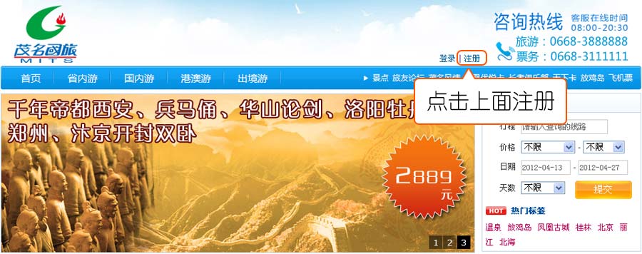 三、活動內(nèi)容即日起,在茂名國旅網(wǎng)站(http://m.jzbyzckj.com)報名參團(tuán),并在網(wǎng)上支付的朋友,即可獲得每天三元的優(yōu)惠。